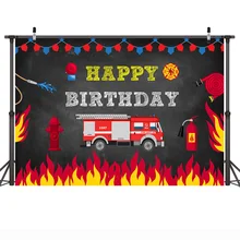 Chance Description for Birthday Party Photography Background for Boys Fire Truck Banner Backdrop Black Theme Background for Photo Studio